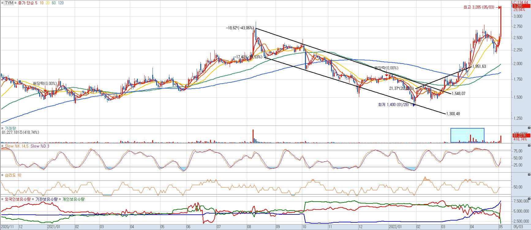 참고로 농기계 관련주인 TYM도 파멥신의 차트와 유사하다